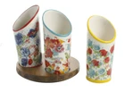 Shape: Round Department: Teens, Adults Number of Compartments: 3 Brand: Pioneer Woman Theme: Country Finish: Shiny Personalize: No Material: Ceramic Country/Region of Manufacture: China Number of Items in Set: 4 Pattern: Floral Occasion: All Occasions Character Family: Floral Medley Type: Utensil Holder Style: Country Character: Floral Medley Color: Multicolor