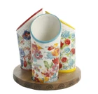 Pioneer Woman Utensil Holder ✨ 3 Compartment Floral Medley Ceramic with Wood Bas