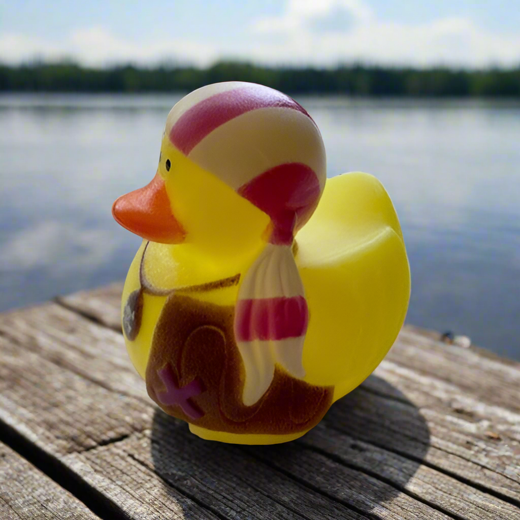 There's no ocean too big for Pirate Bandana Rubber Duck to travel! Rubber duck approximately 2" high. Not guaranteed to float upright. Comes with a random WISE QUACK note of inspiration and humor!