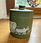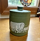 You are bidding on a green sugar bowl with hand painted in relief cameo of American pioneer life of Covered wagon scene. Made by Walter Stephen from Arden North Carolina at Pisgah Forest Pottery. Dated and signed 959 with mark of Pisgah Forest Pottery on the bottom. Please see lovely pictures of this very collectible piece of vintage North Carolina pottery. We have the matching creamer and a mug listed as well. Can ship together to save on shipping cost.