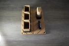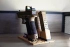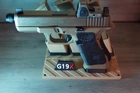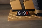 This portable and durable pistol and magazine stand is a must-have for any Glock 19X handgun owner. Crafted from high-quality PLA material, it measures 6.7 inches in length, 4.7 inches in width, and 3 inches in height, with a weight of 6.5 ounces. The aggressive design and color choice compliments the glock 19X perfectly! Designed for easy and convenient access, this stand features custom-made slots to hold your pistol and magazines in place. Made in the United States, it comes in a stylish beige color and is suitable for both home and range use. Get your hands on this one-of-a-kind unit today and display, store, and organize your 19X in style. Pistol and magazines not included. Items is for 1 glock 19x stand.