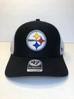 Show your love for the Pittsburgh Steelers with this officially licensed '47 brand trucker hat. The black cap features the team's logo and is adjustable to fit any head size. Perfect for football season, this hat is a must-have for any fan. Whether you're watching the game at home or cheering on the team at the stadium, this hat is the perfect accessory to show your support. It's designed for adults and is one size fits all, so grab yours today and show your love for the Pittsburgh Steelers.