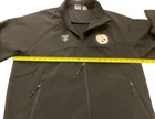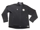 Show your support for the Pittsburgh Steelers with this Reebok NFL Equipment Jacket. Made for men in size medium, this black jacket is perfect for any fan of the National Football League. Represent your favorite team with pride while staying comfortable and stylish. The jacket features the team's logo and colors, making it a great addition to any fan's collection. Whether you're heading to the game or just showing off your team spirit, this jacket is perfect for any occasion. Get yours now and show your support for the Pittsburgh Steelers! Pre owned stain on the sleeve.