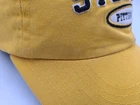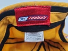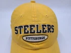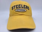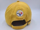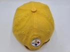 The tag says one size, but it seems best suited for smaller sized heads. Also has stains/discoloration on the brim, front, side, back, and underneath the hat as seen in photos. Pittsburgh Steelers Reebok Strapback Adjustable (Fits Small) Hat Cap NFL Yellow. EACH ADDITIONAL HAT PURCHASED IS ONLY $1 ADDED SHIPPING!