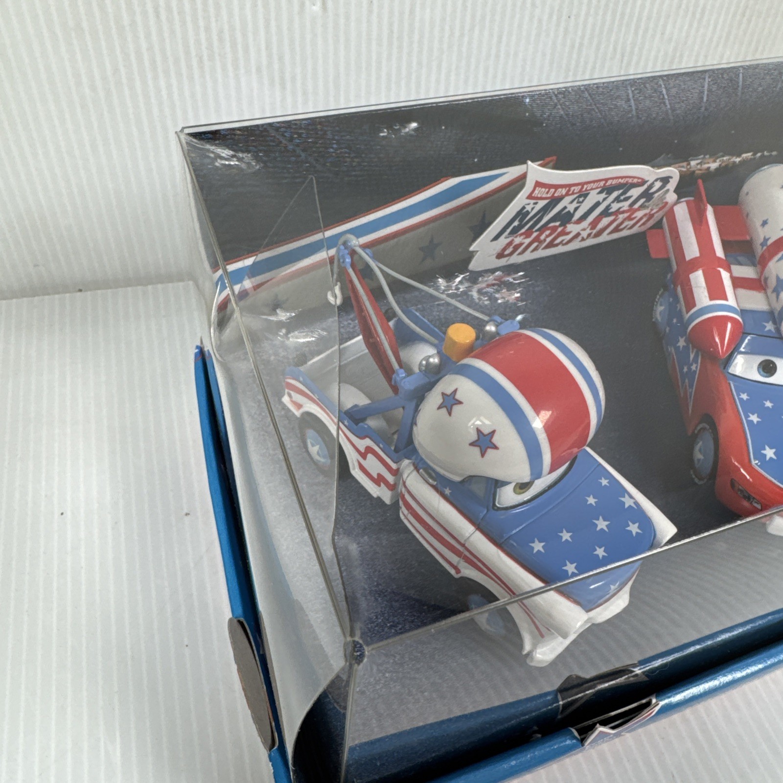 CONDITION NOTE: the left side of the box has some damage with dents in the top plastic and a tear in the cardboard. The cars are still in new condition, sealed in the box. See photos for details. This Disney Store exclusive Pixar Cars Toon Mater The Greater Diecast 2-Pack is a must-have for any fan of the franchise. The pack includes two highly detailed die-cast cars, featuring Mater in his greater form from the popular TV show "Mater's Tall Tales". The cars are multicolor and made of high-quality material, ensuring that they will last a long time. The pack also comes in its original boxed packaging, making it a great addition to any collection. This retired item is a great find for any Pixar or Disney fan, and it is sure to bring joy to any collector.