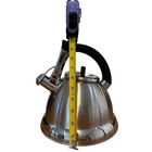 Enjoy a perfect cup of tea with this sleek stainless steel whistling kettle. The black handle ensures a comfortable grip. Ideal for any modern kitchen. 5 Layer Capsule Bottom Size 3 Quarts