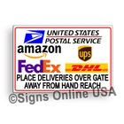 Available As An Aluminum Sign / Magnetic Sign / Vinyl Decal Aluminum Signs Are Available In Five Versions 5" x 7" / 8" x 12" / 12" x 18" Treated With Ultra UV Protection To Prevent Fading Printed directly onto the metal sign Signs do not have stickers, decals, paint or vinyl lettering Won't fade, crack, peel, chip or rust. 5" x 7" (.025 thickness) Signs have square corners, two strips of mounting tape and no holes 8" x 12" (.025 thickness) Signs have rounded corners and are available in TWO OPTIONS AVAILABLE WITH 1/4" MOUNTING HOLES ALSO AVAILABLE WITHOUT MOUNTING HOLES BUT MOUNTING TAPE IS ATTACHED TO THE BACK OF THE SIGN 8" x 12" (.032 thickness) Signs have rounded corners and two 1/4" mounting holes 12" x 18" (.032 thickness) Signs have rounded corners and two 1/4" mounting holes Decals are 4" X 6" Vinyl decals do not have holes Printed with eco-solvent ink guaranteed to last 5 to 7 years Decals are shipped USPS First Class Mail with tracking CUSTOM DESIGN DECALS ALWAYS AVAILABLE Magnetic Signs Offer The Option Of Being Removable You can display the sign on your garage door or front door when you are expecting a delivery and then remove it when no delivery is expected Perfect if you'd prefer not to have a sign mounted permanently Magnetic signs are 7" x 10" or 5" x 7" and have no holes PLEASE CHECK TO MAKE SURE THAT MAGNETS STICK TO THE AREA THAT YOU PLAN TO USE THE MAGNETIC SIGN Some doors are aluminum and the signs may not stick PREMIUM QUALITY Made In The U.S.A. FAST SHIPPING 100% COMPLETE SATISFACTION GUARANTEED Your item will arrive quickly and in perfect condition. If there is anything about the transaction that doesn't meet your expectations, or if your item is damaged in shipping by the post office, Please send us a message and give us the opportunity to address your concern We promise to correct all problems to your complete satisfaction as quickly and easily as possible. EVERYTHING THAT WE SELL IS 100% MANUFACTURED IN THE UNITED STATES SINCE 1998 Thank you for supporting a family owned business Thank You for considering Custom Signs