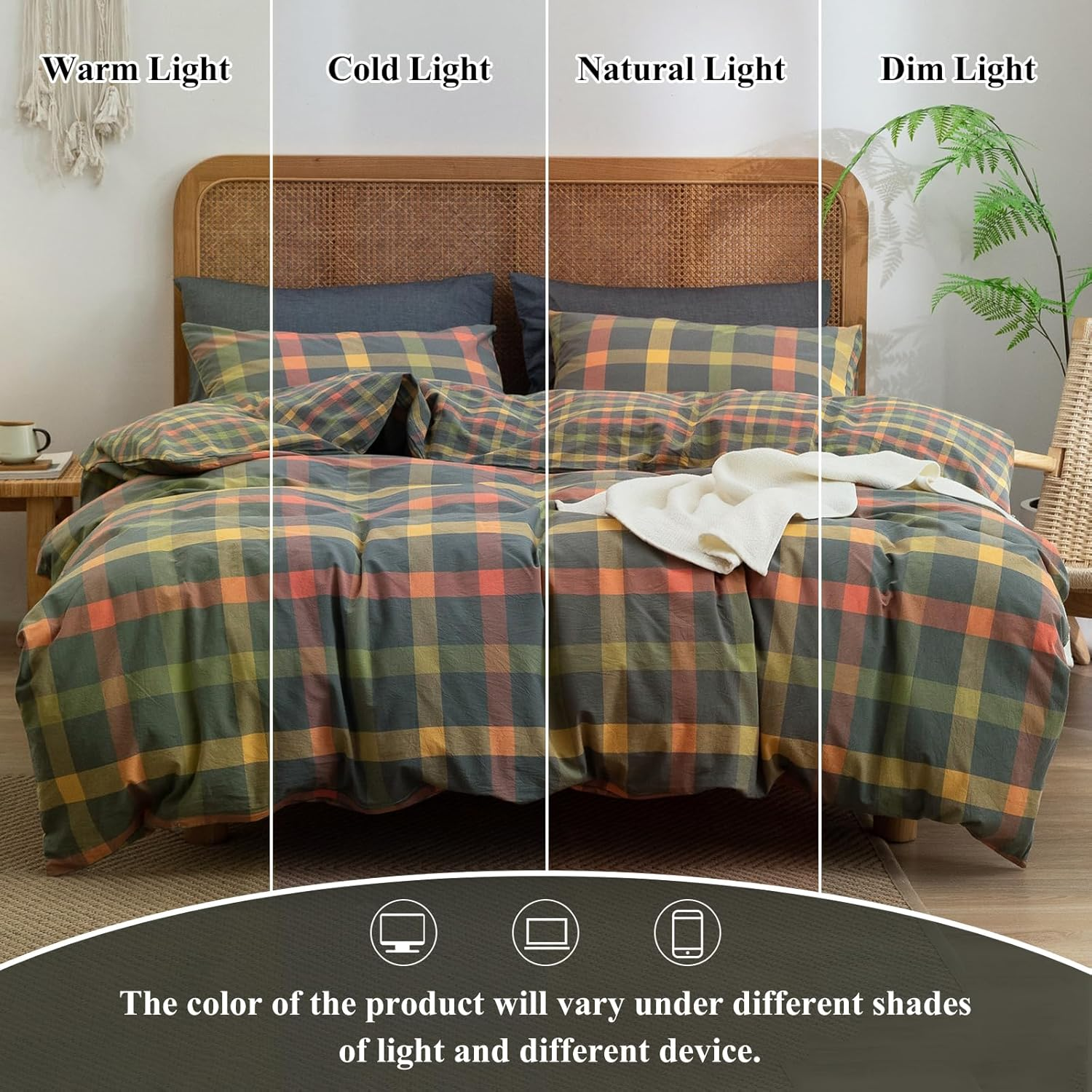 3 Pieces Duvet Cover Queen Size 100% Washed Cotton 1 Duvet Cover with Zipper and