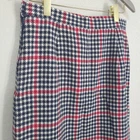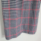 Plaid Houndstooth Pencil Skirt SIZE: No tag. Based on measurements seems around a size 10 *** ~ Approx measurements in pics CONDITION: Preloved and in Great Condition. No holes, tears, stains FABRIC: No fabric tag, but feels like wool or wool blend DETAILS: ~ Navy Blue, Red and White Houndstooth Plaid ~ The Navy blue is dark, almost black, but when I lay it on black I can see it’s navy blue ~ Button Zipper Closure on the side ~ Straight Pencil Style ~ Knee Length / Below Knee depending on height ~ Back Split ~ Lined ~ Preppy, Classic, *** Make sure it fits - Sizing varies between brands and decades. It's best to know your body measurements and compare them to clothing measurements and your preferred fit. If you need help on how to do this, or additional measurements, let me know. I will be happy to help.