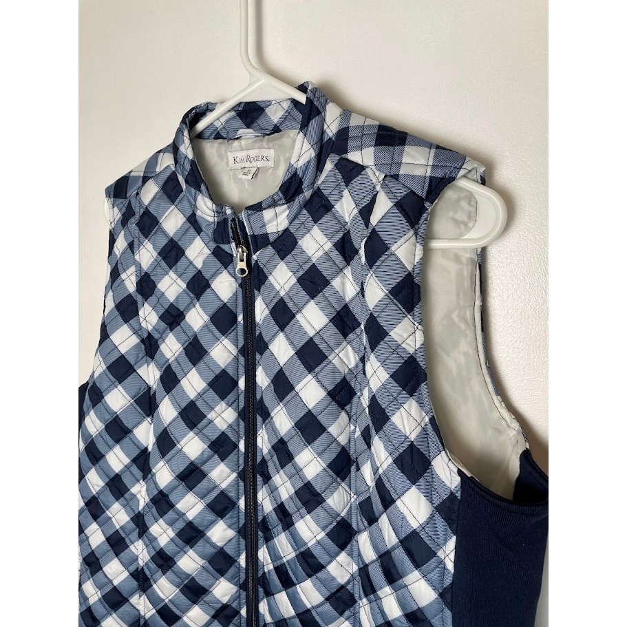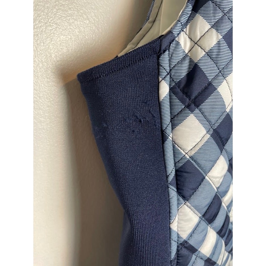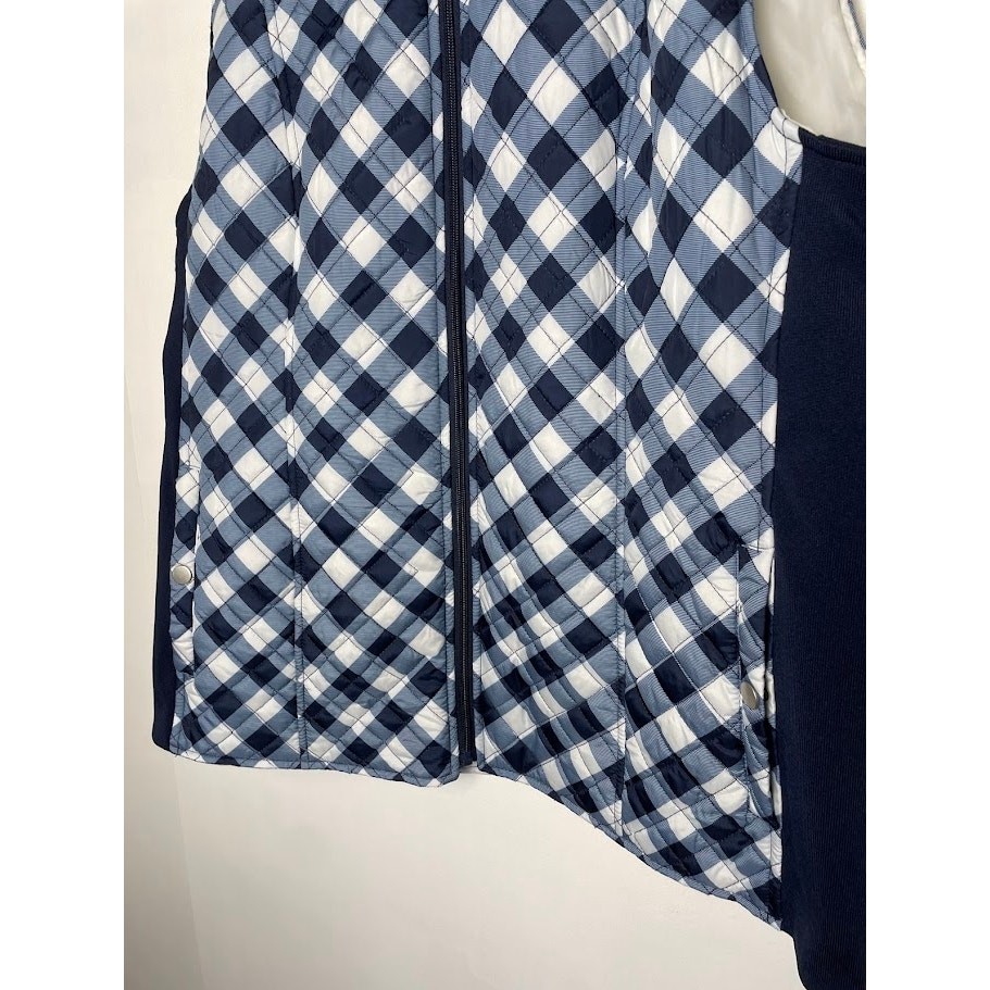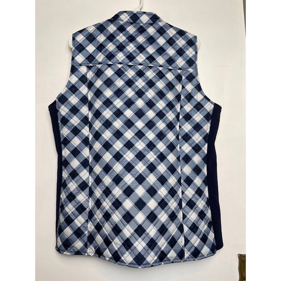 Plaid Quilted Vest Womens Navy Blue And White Sleeveless Jacket Full Zip Size XL Pit to Pit 22" Length 27" Polyester Spandex Good Condition does have slight pilling on side as shown in Pictures