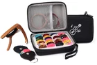 PlasMaller Guitar Picks Holder Case Bag Set, included Upgrade Capo + Guitar Strings + 30pcs Acoustic Electric Guitar Colorful Picks + Little Picks Holder (Black) Product Details Item Weight: 7.8 ounces Package Dimensions: 6.26 x 4.61 x 2.24 inches Item model number: LICHUAK-501-01 Date First Available: January 18, 2021 Color Name: Type 2 Compatible Devices: Guitar, Ukulele, Banjo Guitar Pick Thickness: Medium Material Type: Ethylene Vinyl Acetate (EVA) Size: Small DESIGN & FABRIC- Made of hard EVA material with good water resistance and dustproof, soft interior cushions the impact of your guitar picks STRUCTURE- 6 x 4.7 x 2.4 in, small size allows you to easily put guitar holder in your bag; With a sturdy hand strap makes it easy to carry; Smooth strong zipper easy to open and close; Soft inner foam cut fits your picks snug and more stable; Inside extra mesh pocket allows you to store the tuner, capo, strings, straps PACKAGE- Included Quality 30 pcs Celluloid picks (3 Different Thicknesses - Thin 0.46mm * 10, Medium 0.71mm * 10, Thick 0.96mm * 10; Color is random) + 1 extra little picks holder + 1 Upgrade Capo + 2 Guitar Strings (Each set including 6 strings) PRACTICAL- Large capacity, this storage case can hold 50+ picks, enough space for all your picks and other accessories , keep your guitar accessories well organized and safety IDEAL GAME GIFT- Whether it is a party or a trip, this guitar kit holder set will be a good choice; Also is a wonderful gift for kids, friends or guitarist