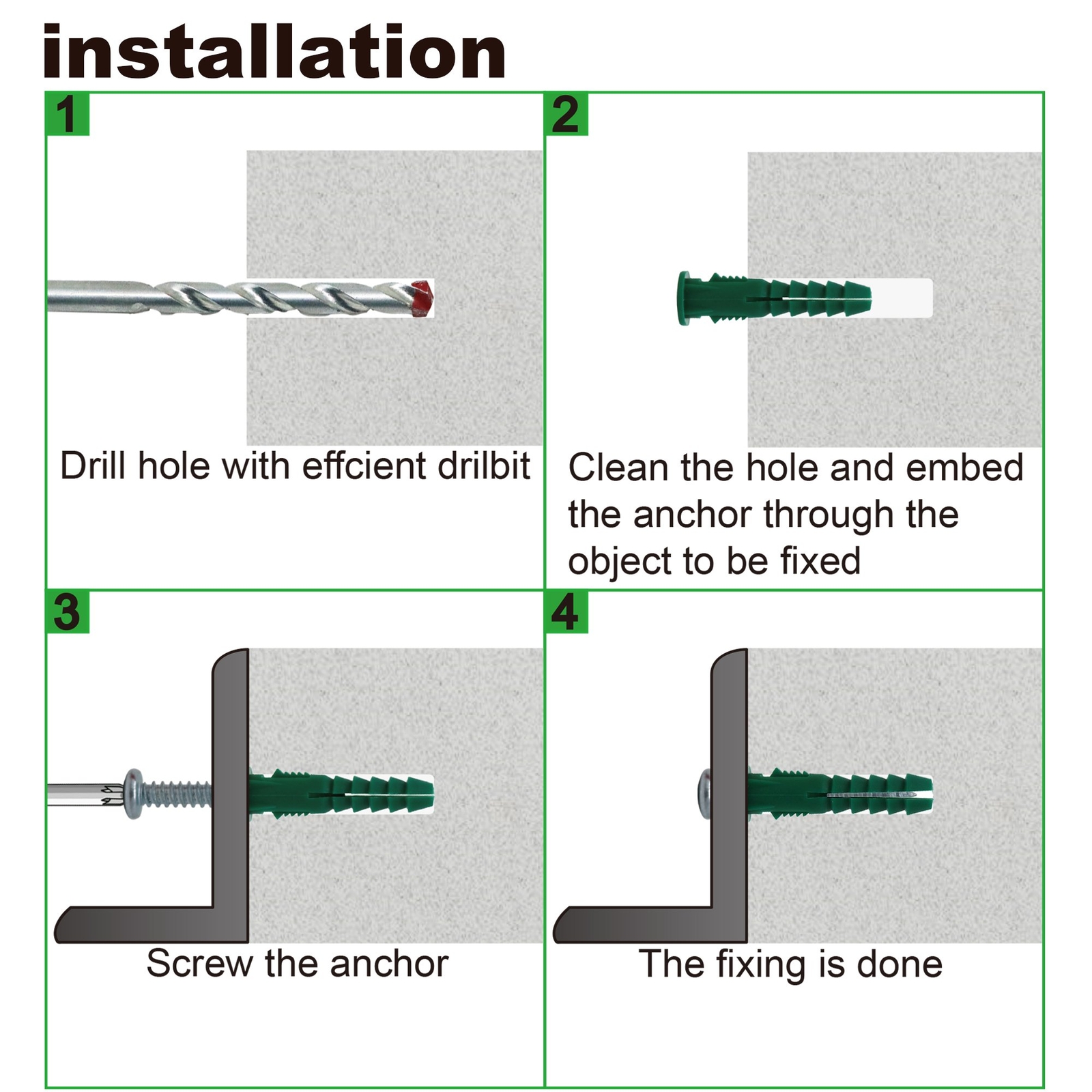 Plastic Drywall Anchors and Screws Kit, Ribbed Anchors Assortment Screws Kit, Wall Anchor Kit 400Pcs Easy to install. Drill a hole in the wall first, properly clean up the dust and then knock the anchor into the hole. Finally drill the wall screws and tighten it. Anchors are made of high-quality plastic, rust proof and corrosion resistant. Highly robust carbon steel screws are durable and stable. The drywall screw kit has superior stability and load-bearing capacity. When installed, it holds firmly to the wall. Wall screws can be widely used in various decoration occasions, such as fastening air conditioners, water heaters and range hoods. It can also fix anti-theft doors and windows, mirrors, photo frames. Kit includes:anchors:#6-#8,#10-#12,#12-#14;self tapping screws:#6x1",#10x1-1/2". They are packaged in different compartments for easy identification and access. We provide you with worry-free after-sales service, if you have any questions about the product, please feel free to consult us, we will provide you with help. Shipping We offer FREE shipping on all orders! We ship within Three business days of payment, usually sooner. We use a selection of shipping services such as UPS, FedEx, USPS etc. We only ship to the lower 48 states, no APO/FPO addresses or PO Boxes allowed. Local pickups and combined shipping options are not provided at this time. Return You can return a product for up to 30 days from the date you purchased it. Any product you return must be in the same condition you received it and in the original packaging. Please keep the receipt. Payment We accept payment by any of the following methods: PayPal Please pay as soon as possible after winning an auction, as that will allow us to post your item to you sooner! Feedback Customer satisfaction is very important to us. If you have any problem with your order, please contact us and we will do our best to make you satisfied. Contact Us If you have any queries, please contact us via ebay. We usually respond within 24 hours on weekdays. Please visit our eBay store to check out other items for sale! Thank you for shopping at our store.
