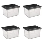 Plastic File Box Paperwork Storage Containers Bins Portable Stackable Set of 4 Outside Dimensions: 18-1/2" x 14" x 11" Color: Black Ideal solution for keeping receipts, bills, taxes, and important paperwork organized and safely contained Conveniently accommodates either letter- and legal-size file folders Contoured design provides comfortable grip area for easy transporting Indexed cover allows multiple File Boxes to be stacked for efficient use of storage space Keep your office and workspace neat and organized with Sterilite File Box. Customize and label either letter or legal sized hanging folders then file away those important documents keeping them neatly organized, while reducing clutter around the home or office. The tight fit snap lid keeps files dust free and protected, while the indexed top allows for multiple File Boxes to be stacked maximizing vertical storage space. The contoured design provides a comfortable grip surface for easy transporting, when files need to be taken on the go or relocated. Shipping We are always working hard to ensure your package arrives as soon as possible. Please understand that some factors like weather, high postal traffic, and the performance of shipping companies are outside of our control. We offer free shipping to the lower 48 states and ship within 3 business days of payment, usually sooner. We do not accept P.O. Boxes. Please provide a physical address. Returns We offer a 30-Day Return Policy on Most items which you are not completely satisfied with. You have the option for a full-refund or an exchange of the item. Customer Satisfaction If there's a problem, Please message us before writing negative feedback or open a case, we will solve any problem for you, We Respond to all messages within Max 12 hours We try our very best to make sure every customer is completely satisfied.