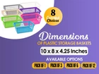 Organize all the commonly-used stuff around your home with this large rectangular plastic storage basket Keep Supplies Contained Whether you need to organize the kitchen pantry, bathroom shelves, closet, or room, this plastic basket expedites the process to keep everything organized and easy to access. This basket is solidly made to contain items and heavy objects from the kitchen pantry, shelves, bedroom, closet, shelves, and other areas around your house without acting flimsy or wobbly. Featuring vented holes for airflow, it is made of BPA-free plastic material and withstands common tear and wear for long-term durability. Attractive Colors to Choose From Storage baskets built with personality and style in mind. We offer these trays in eight vivid colors to match your living settings: - Blue - Green - Gray - Ivory - Pink - Purple - White KEEP CLUTTER AT BAY - This practical storage basket is simple and functional to organize condiments, cleaning towels in the kitchen, bathroom personal care products, medicine, toys, baby , accessories and miscellaneous items around your home STURDY AND DURABLE - Made of high quality plastic, this organizing basket can handle heavy objects without feeling flimsy. It is lightweight and has smooth finish surfaces that clean with a damp cloth DECLUTTER ROOM - If you have ever stepped on a stray Lego piece walking around the home, you know the importance of keeping toys contained. Teach your little ones to keep their possessions tidy and neat with this basket PERFORATED DESIGN - Perforated holes around the basket allows air circulation and easy maintenance, and the handles allows for easy carry. Teachers can use these baskets to organize and contain classes supplies, accessories on the desk, and more PERFECT SIZE - Measurements of this basket of each basket is as follows: Upper outside measurements with rim: 15 in. Length x 9.9 in. Width. Upper Length without rim:13 in. Bottom outside measurements: 7.5 in. Width x 11 in. Length. Height: 5.9 in. Depth: 5.75 in. Seven colors are available to match your style: blue, green, gray, ivory, pink, purple, and white