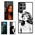 Plastic TPU Case For Samsung S25 S24 S23 FE Ultra a15 a16 girl Cigarette Smoking