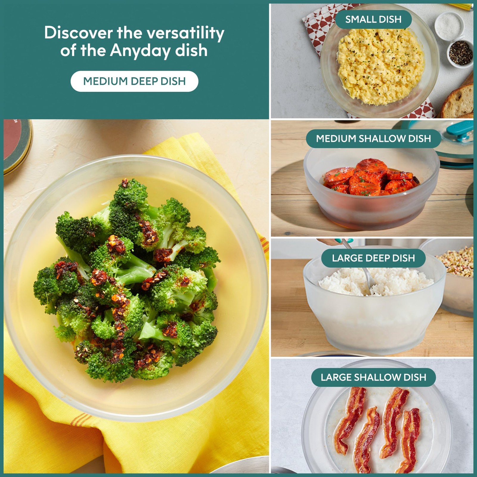 Introducing the Microwave Cookware 2-Piece Medium Deep Dish—the ultimate solution for effortless cooking! Are you tired of cold spots in your reheated meals and mundane leftovers? This stylish yet practical glass meal prep container is designed to keep your food fresher for longer while ensuring even heating. Whether you need a microwave rice cooker, microwave egg cooker, microwave bacon cooker, microwave steamer for vegetables, sturdy soup bowls, pasta bowls, or freezer storage containers, glass containers with lids do it all! Crafted from premium frosted borosilicate glass, food containers with lids combine elegance and functionality. Our robust cooking and baking dishes seamlessly transition from microwave to table to dishwasher—making your life so much easier. This set includes a Medium Deep Dish (4 cups, 6.3" x 3.4", 2 lbs)—perfect for 1-2 portions of grains, veggies, soups, mashed potatoes, and more. What sets cookware apart? The silicone-rimmed glass lids trap steam for moist, flavor-packed meals while effectively ventilating to prevent pressure build-up. Enjoy healthier cooking—microwave-prepared meals retain more nutrients than those cooked via traditional methods according to research from esteemed institutions such as Harvard and Cornell. Enjoy delightful, nourishing dishes in record time with the help of our microwave-safe glass meal prep containers with lids. Designed for the modern kitchen, our versatile meal prep glass containers with lids are not only perfect for cooking but work wonderfully as elegant serving and food storage containers. Plus, they are dishwasher-safe! Spend less time washing dishes and more time savoring flavorful meals with your loved ones. Unlock a world of culinary creativity with clear food storage glass dishes. Whether making a tasty side dish, a delectable dessert, or a complete meal, this cookware is a kitchen essential. The Dish That Does It All: Made of sturdy frosted borosilicate glass, food storage containers with lids make it easy to enjoy moist, evenly cooked meals straight from the microwave without having to worry about warping or microplastics Silicone-Rimmed Glass Lid: Our splatter-blocking, airtight lid features a steam-trapping silicone rim that keeps food moist and a silicone knob that vents excess steam; Press the knob down to neatly stack and store our glassware storage containers Hassle-Free Healthy Meals: Effortlessly transform raw ingredients into mouthwatering, nourishing meals in record time with this microwave-safe cookware set; Cooking homemade meals in the microwave is perfectly safe and preserves important nutrients Steam, Serve & Stack: Whether you need a vegetable steamer, glass mixing bowl, sturdy lunch container, or elegant serving bowl, our dishwasher-safe glass food storage dishes do it all; Cook, serve, neatly stack and store meals with minimal mess Medium Deep Dish: This convenient lidded glass storage container perfectly caters to your cooking needs, whether steaming, oven roasting, reheating, serving, or storing food; It's the perfect size for 1-2 portions of grains, veggies, soup and more