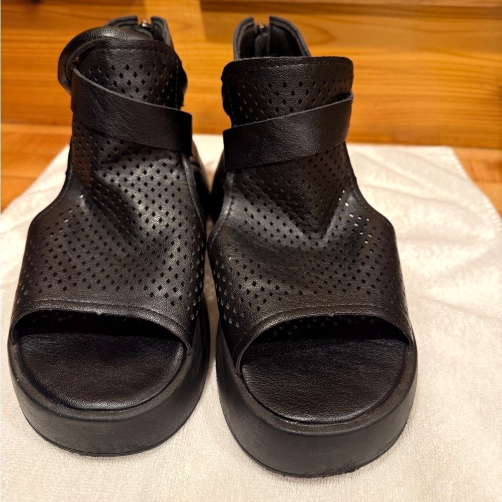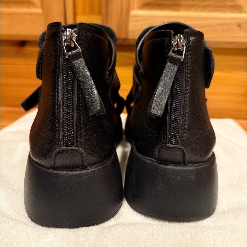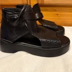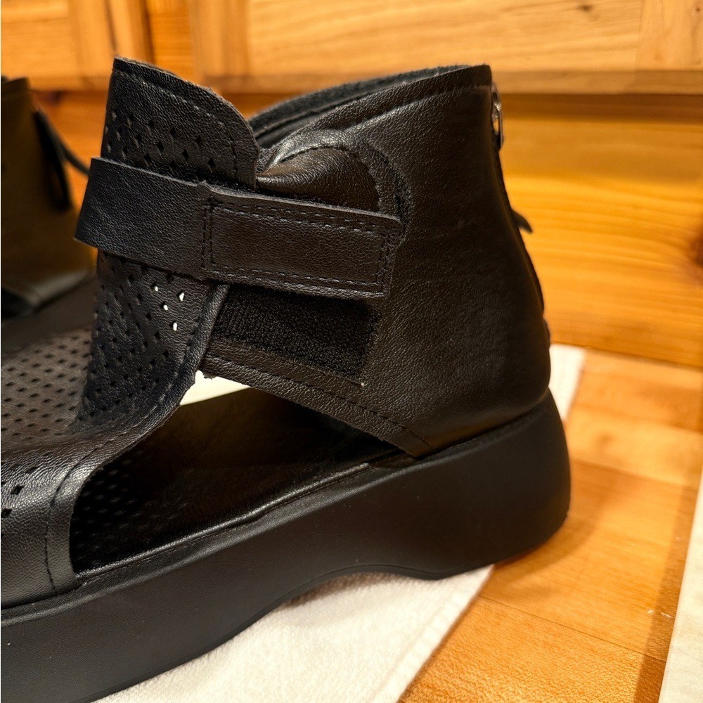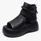 Women's Leather Platform Wedge Sandals Adjustable Open Toe Back Zipper Hook Loop Causal Roman Sandals High Top Round Toe Breathable Walking Dress Shoes Sz 39 / 8.5 US Stylish and comfortable black women's sandals perfect for any occasion. These sandals offer a sleek design with a modern touch.