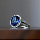 $ 2101.3214K White Gold Wedding Ring Cushion Cut London Blue Topaz 13.00 Ct Real Diamond