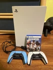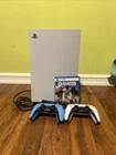 PlayStation 5 (2 Controllers & Games) What This Listing Includes: Sony PlayStation 5 2 Dual Sense PS5 Controllers (Blue & White) Games: College Football 25 (Disc) Hogwarts Legacy (Digital Download) Last of Us II (Digital Download) Need for speed (Digital Download)