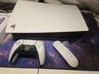 500 Gb digital Playstation 5, used with controller and accessories, has a small dent in the top of one of the panels. Works great with no issues