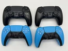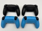 Parts or Repair Only! Set of 4 Sony PlayStation 5 DualSense Wireless Controller - Black, White, Blue, and Purple One black controller has a bad left joystick, all other buttons function properly. One black controller has a bad left joystick and action buttons, all other buttons function properly. One blue controller has a bad left and right joysticks, all other buttons function properly. One blue controller has a bad USB port, I wasn't able to test functionality of buttons. Controllers will not ship in original box or with manuals, controllers only.