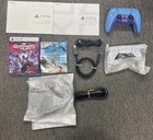 For sale is a good, preowned Sony PlayStation 5 8K console with 825GB storage, 2 controllers (one white, one blue/purple), 1 power cord, 1 USB C charging cable 1 USB charging cable, 1 HDMI cable, manufacturer’s documentation and a new, sealed Guardians of the Galaxy video game and a new Horizons game code. System has a Blu Ray drive installed.