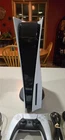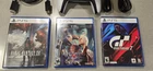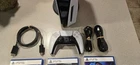 SONY PS5 Model CFI-1215A with included cables, HDMI cable, USB charging cable, power cable, vertical stand, and controller. Games included are Devil May Cry 5 Special Edition, Final Fantasy 16, and Grand Turismo 7. All games are in perfect condition.