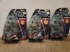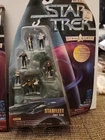 This collection of Star Trek Strike Force figures from Playmates is a must-have for any fan of the franchise. With characters from The Next Generation series, these vintage action figures are perfect for collectors. Each figure is in great shape and ready for display or play. The brand, Playmates, is well-known for their high-quality collectibles and attention to detail on these figures is impressive. Whether you're a fan of science fiction and horror or just love Star Trek, this collection is sure to impress.