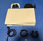 Playstation 5 with disc and with Samsung Electronics 980 PRO SSD with Heatsink 1TB PCIe Gen 4 NVMe M.2 Internal Solid State Hard Drive, Heat Control, installed. Also comes with white controller, original USB to USB-C controller power cord, original HDMI cable, original horizontal stand, and original power cable.