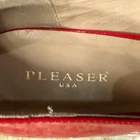 Step out in style with these stunning Pleaser stiletto heels! These elegant red patent heels are sure to turn heads. Features: - Brand: Pleaser - Style: Stiletto - Color: Red - Material: Patent - Heel Height: 4.5 inches - Size: Women's 14 These heels are perfect for a night out, special occasion, or adding a pop of color to your wardrobe. They are in excellent condition and ready to wear. Don't miss out on these gorgeous heels!