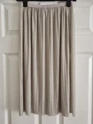 This is a stylish pleated silver midi skirt in size XS, perfect for holiday season. The skirt has a super stretchy waistline, making it comfortable to wear. The fabric does NOT crease, which is ideal to pack for a holiday. Please note, this item is see through!