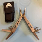 This Plier Multi Tool is a must-have for any outdoor enthusiast. With 10 different tools including a plier, punch, knife, serrated knife, wire cutter, wire stripper, bottle opener, Phillips screwdriver, file, small screwdriver, and can opener, this multi-tool has everything you need for any situation. The blade is made of durable stainless steel and features both a one serrated and one straight edge for added convenience. The silver color and sleek design make this multi-tool stylish and easy to use. It is perfect for camping, hiking, or any outdoor adventure. This multi-tool is a reliable and practical addition to your toolkit.