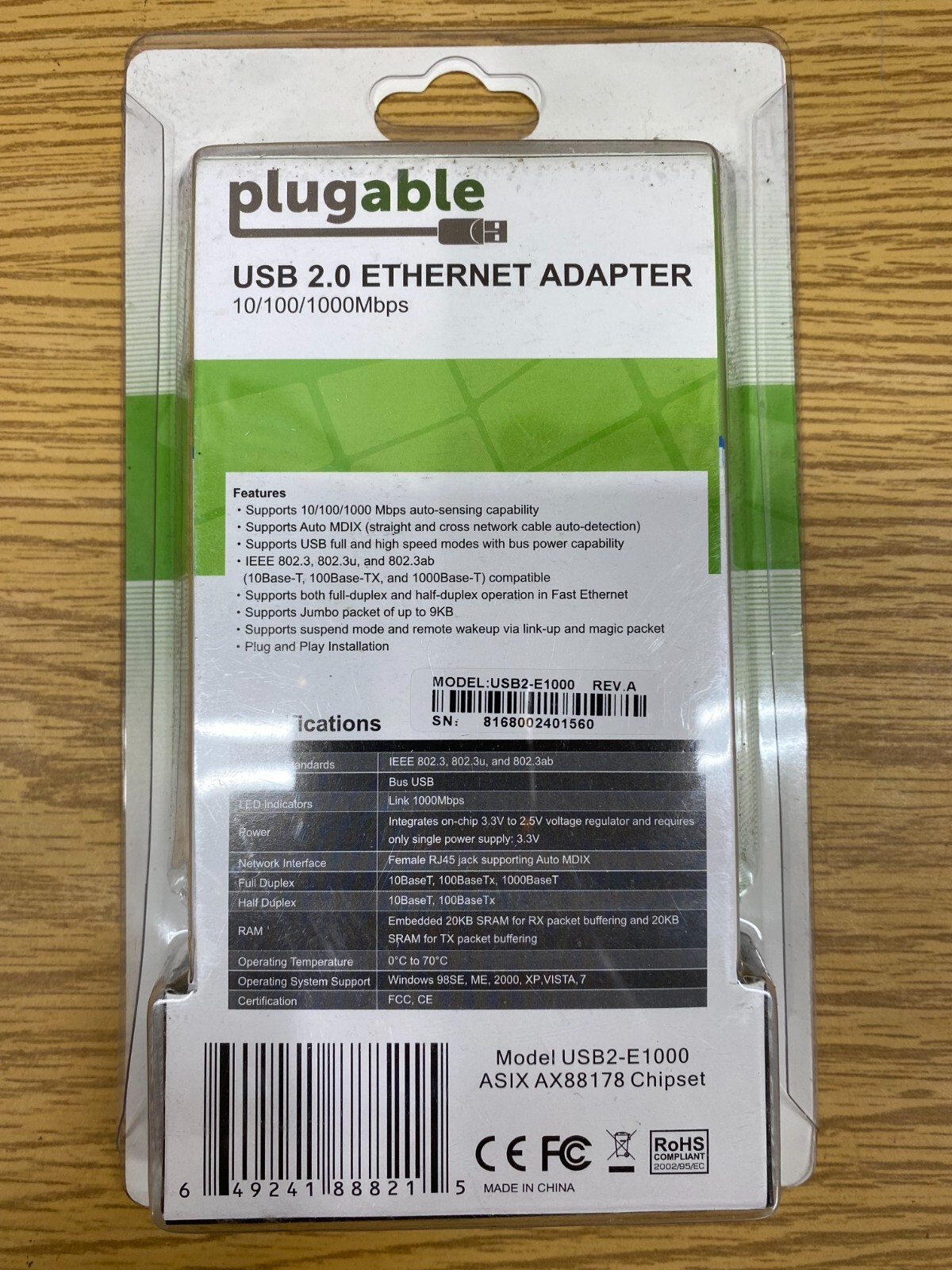 Up for sale is a NEW Plugable USB 2.0 Ethernet Fast 10/100 LAN Wired Network Adapter USB2-E1000 Item is brand new sealed in package