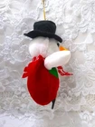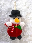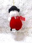 Add a touch of holiday cheer to your Christmas tree with this adorable 5" snowman ornament. The ornament features an adorable snowman dressed in a cute red suit with green collar. He sports a black felt hat and a festive striped scarf. He has little black felt feet. This whimsical little plush ornament is perfect for any snowman enthusiast. Whether you're collecting ornaments, finding something special for an ornament exchange or just looking for a fun addition to your holiday decor, this snowman ornament is sure to bring a smile to your face.