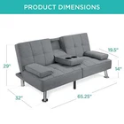 Enhance your living space with this versatile convertible futon sofa bed, designed to provide both comfort and functionality. Upholstered in soft linen fabric, it features a tufted backrest and sleek chrome metal legs, adding a modern touch to any room. The adjustable backrest offers three positions—upright for engaging conversations, reclined for relaxed lounging, and flat to accommodate overnight guests. A fold-down armrest equipped with convenient cup holders ensures your beverages are always within reach. With a sturdy construction supporting up to 500 pounds, this futon is perfect for small spaces like apartments or dorm rooms, seamlessly blending style and practicality.
