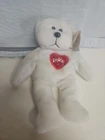 This Plushland white bear is the perfect cuddly companion for all occasions. With a loving expression on its face and a heart on its chest, this polar bear will bring joy to any child. Measuring at a small size of 6-14 inches, it is perfect for children aged 3 to 10 years old. Made in 1999, this loving bear is part of the Plushland brand and features a soft, white fur that is perfect for snuggling. The bear belongs to the Character Family of love bears and is sure to bring a touch of love and warmth to any home. Gently used. From a pet and smoke free home.