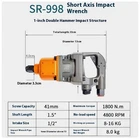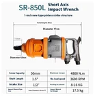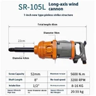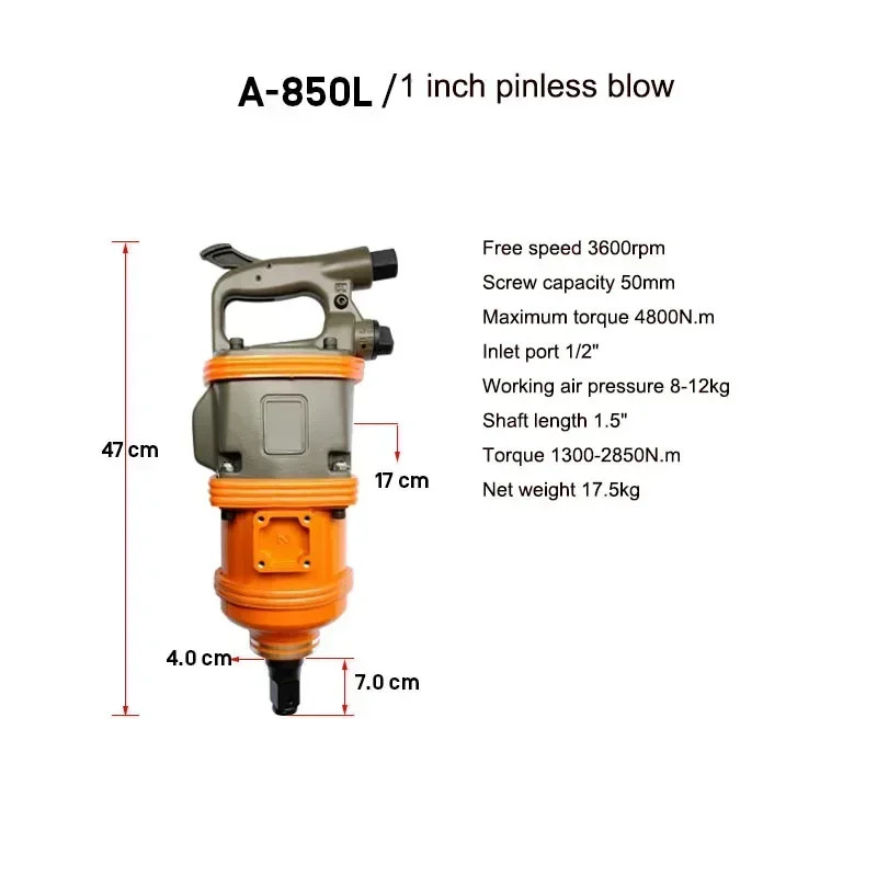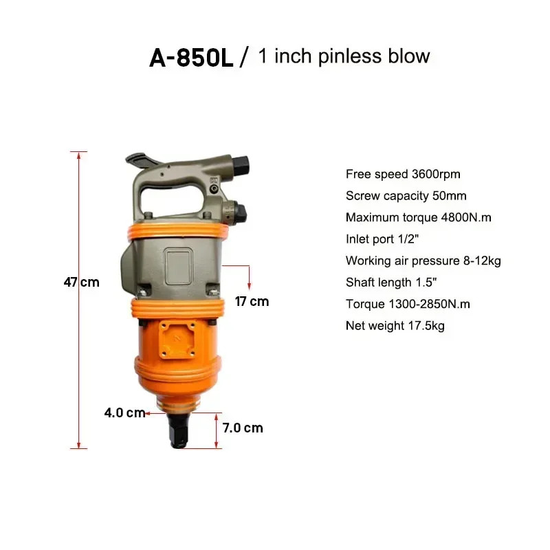 Industrial-grade Pneumatic Wrench Large Air gu Sleeve Auto Repair Disassembly Repair Trigger Impact Air Wrench Free speed 3600rpm Screw capacity 50mm Maximum torque 4800N.m Inlet port 1/2" Working air pressure 8-12kg Shaft length 1.5" Torque 1300-2850N.m Net weight 17.5kg