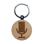 Podcast Broadcast Microphone Engraved Wood Round Keychain Tag Charm
