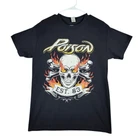 Authentic Poison band tour t-shirt featuring a striking skull and crossbones design with flames. The graphic shows 'EST. 83' text. The shirt is in black with gold and orange accents. Tour dates from 2022 are listed on the back. Made by Gildan. Color: Black Department: Unisex Adults Type: T-Shirt Fit: Classic Sleeve Length: Short Sleeve Character: Skull, Flaming Skull, Rock Spirit, Death Head, Crossbones Pattern: Graphic Print Character Family: Poison Rock Band, Heavy Metal Bands, Stadium Tour 2022, Classic Rock, 80s Rock Bands Keywords: poison, band tee, tour shirt, concert merchandise, skull, rock band, heavy metal, stadium tour, 2022 tour, vintage style, band merch, graphic tee all items have been cleaned and disinfected we stand behind all we sell so please contact us if you have an issue with any order