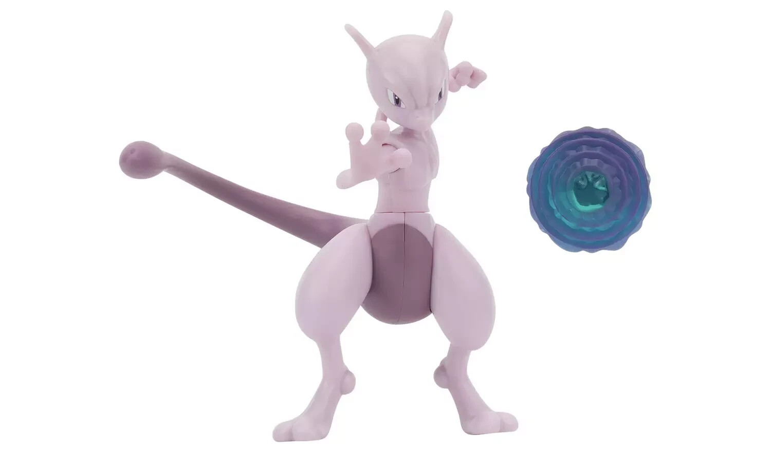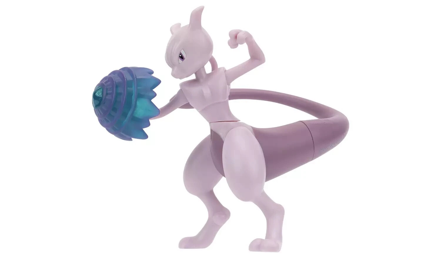 The Jazwares Nintendo Pokémon Battle Ready Figure Mewtwo Deluxe Action 2024 New Toy is a plastic PVC action figure of the character Mewtwo from the Pokémon franchise. Manufactured in 2024, this toy is designed for ages 4 and up, featuring a Battle Feature Figure model with a TV, Movie & Video Games theme. It is an original licensed reproduction inspired by the Pokémon TV show and movies, part of the ongoing Pokémon series by Jazwares. About this product Choose Mewtwo, the Genetic Pokemon. Featuring seven points of articulation and a Psychic Blast launcher, this 4.5-inch figure is made for play and display. It was designed with authentic details and looks like it jumped right out of the Pokemon Animated Series. Add Mewtwo to your Pokemon team and look out for more Battle Feature Figures. Officially licensed Pokemon product from Jazwares. ATTACK FEATURE: Mewtwo launches a Psychic Blast from its hand during battle.