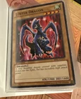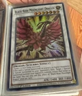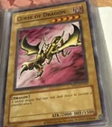 The listing is for a Pokemon binder with dragon type cards from Yu Gi oh, magic the gathering, and Pokemon Tcg. The cards range from lightly played, near mint, and mildly played. Holos included over 30 cards total