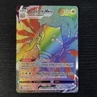 The Pokemon card is a Secret Rare Rainbow version of Regieleki VMAX from the Tempest set, numbered 198/195 in the Pokémon TCG. This highly sought-after card features the Electric-type Legendary Titan character, Regieleki, in its powerful VMAX form. Collectors and players alike value this card for its rarity and speciality within the game, making it a desirable addition to any Pokémon card collection.