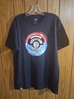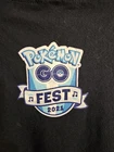 This is a Pokemon-themed T-shirt for men, size L. It features a graphic print with the Pokemon logo on both sides in blue color. The shirt is made of cotton knit fabric and is easy to care for with machine washability. This limited edition tee is ideal for all seasons and showcases a Nature, Art, Anime, Colorful, Outdoor, and Cartoon theme, perfect for Pokemon fans attending the Go Fest 2021 event.