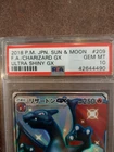 This is a Japanese Pokémon trading card featuring a full art Charizard GX from the GX Ultra Shiny set. Released in 2018, this Shiny Holo Rare card has a HP of 250 and is part of the Stage 2 evolution line. The card is in Japanese with the card name "リザードンGX" and features stunning artwork by 5ban Graphics. It comes from the High Class Pack GX Ultra Shiny expansion and is a sought-after collectible for Pokémon TCG enthusiasts. The card has a Fire attribute and showcases the powerful Dragon-type Pokémon, Charizard.