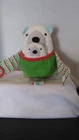Really cute excellent condition. Has a baby polar bear in front pouch. You could hang this. There is a plastic ring on the bottom and a small mirror on right paw. The baby bear comes out and is very soft. The large bear make a crackling sound when squeezed. This is made to hang from a stroller or seat could be used during tummy time