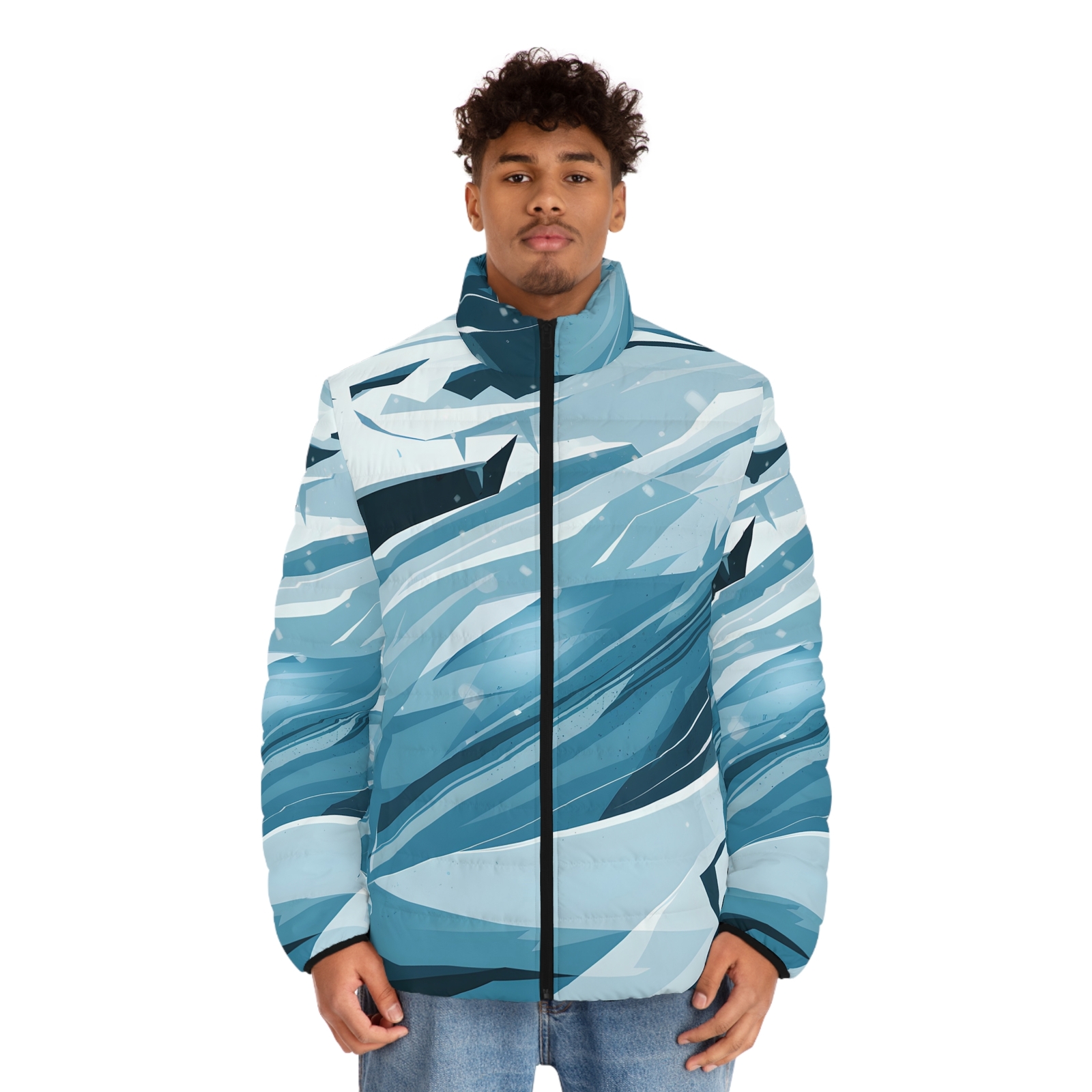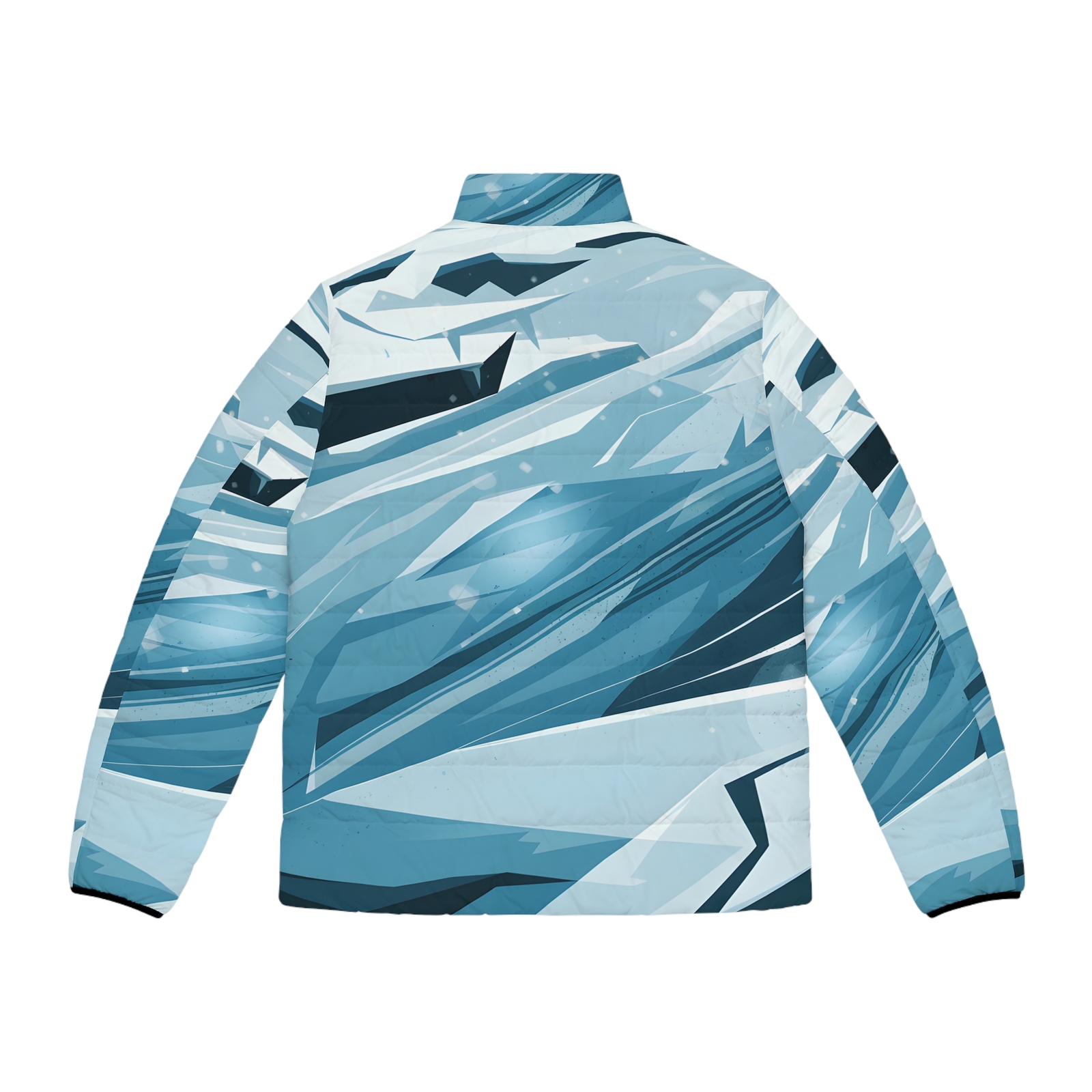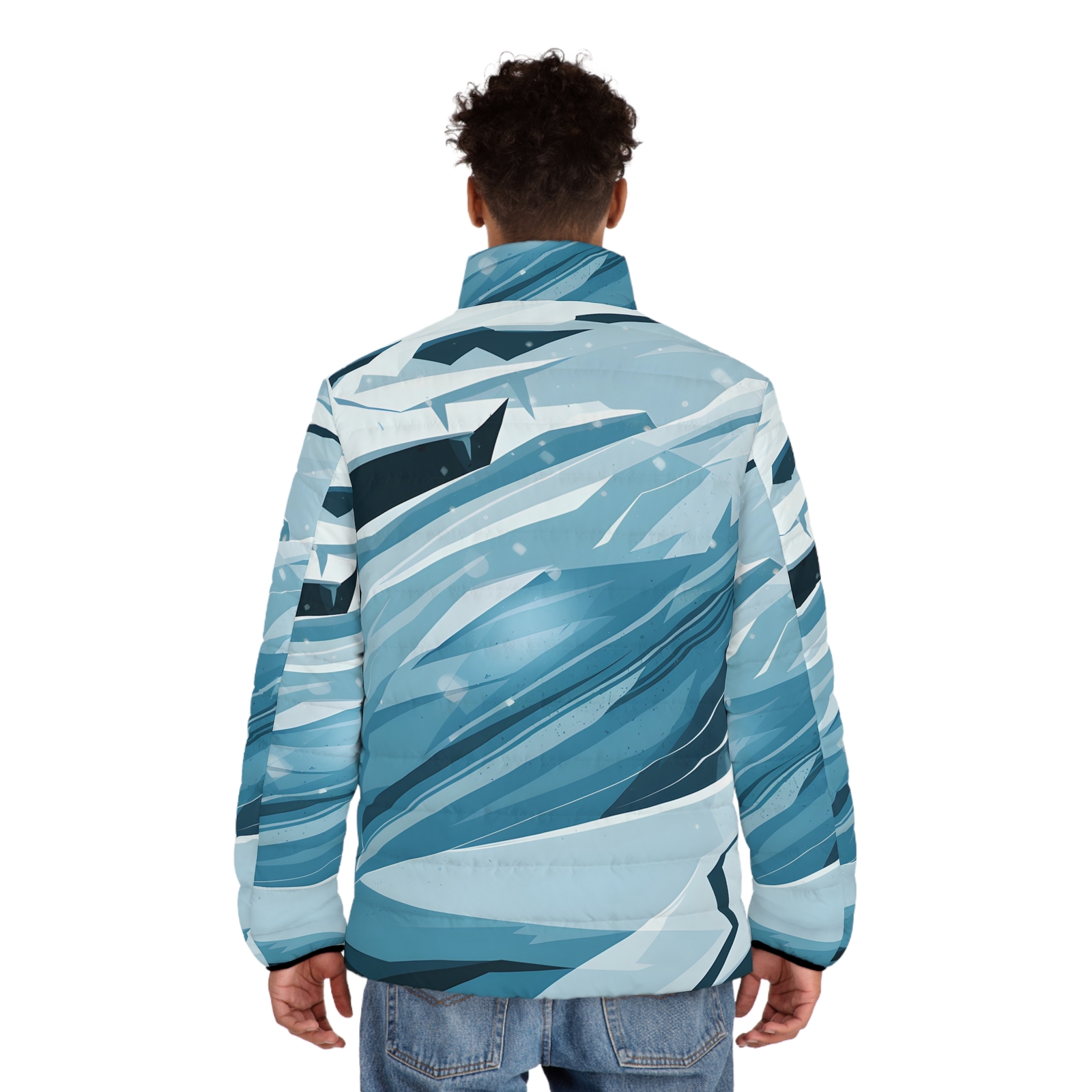 80's Retro Mountain Puffer Jacket Men’s Geometric Winter Coat Full Zip Outdoors