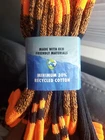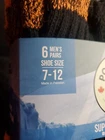 Six pairs of boot socks. 62% polyester 34% cotton 3% spandex 1% nylon.