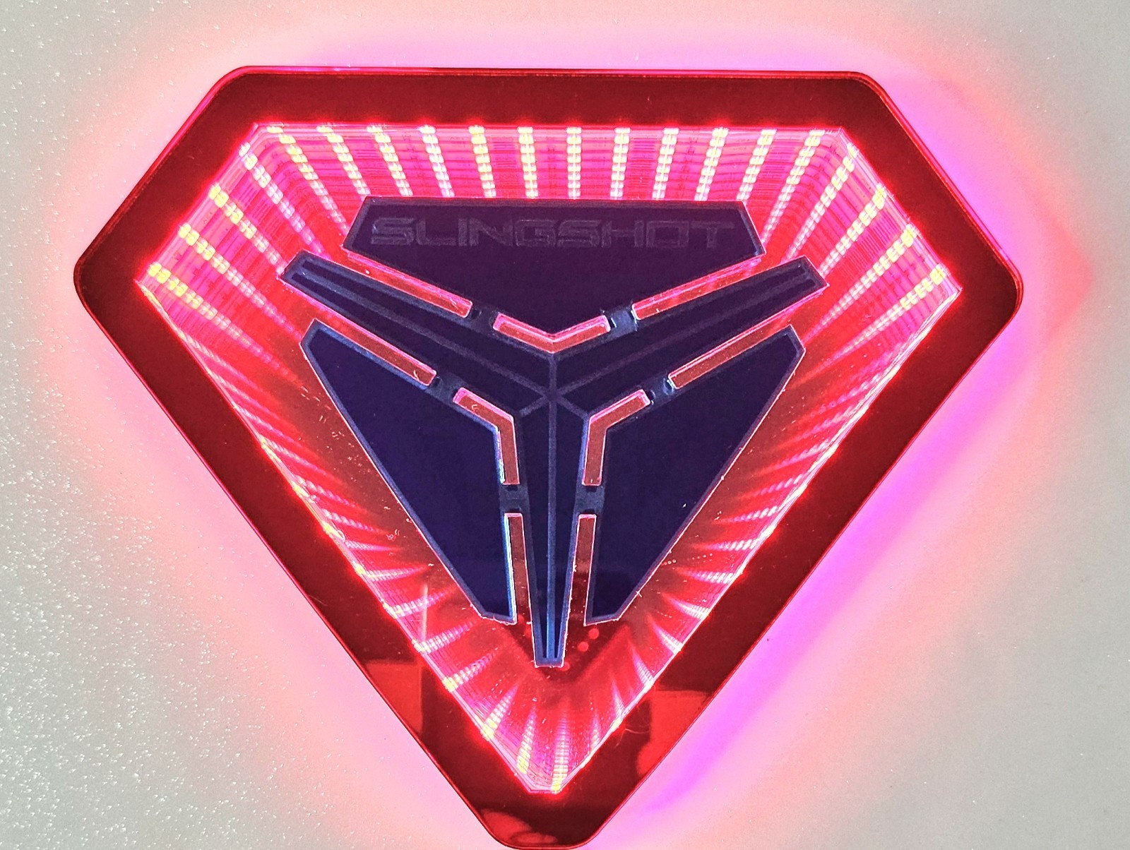 LED Hood emblem for the Polaris Slingshot. Pacific teal fade and Pearl Red All Metallic materials with Forever Light technology. 6500k LED super bright Easy Install 12v red black wires Comes Backed with 3M adhesive Low Profile only 3/8 inch thick 1 year warranty My company is SlingtoySS we are a professional Acrylic and wrap company that specializes in mods and custom products for the Polaris Slingshot.