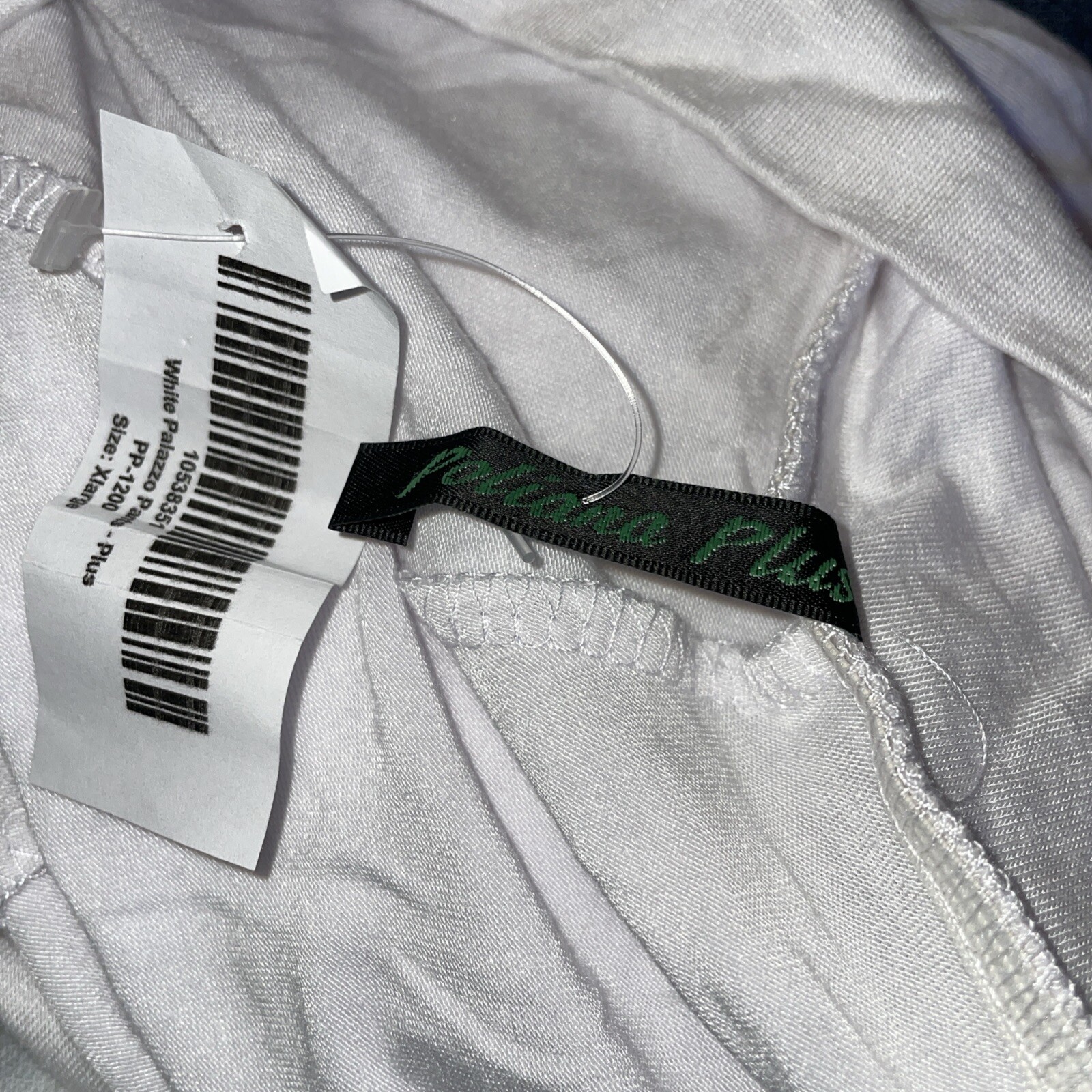 These white Poliana Plus palazzo pants are size XL with a high rise and wide leg style, pull-on closure, and are made of spandex and rayon. The pants have a relaxed fit and are designed with a flat front. Ideal for casual occasions in the summer and spring or for yoga, these pants have a 28-inch inseam and are hand wash only. New with tags.