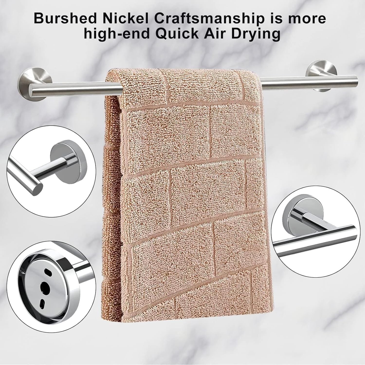 【Package Included】10 pieces polished chrome Bathroom hardware set includes 2×towel bar, 2×toilet paper holder, 2×towel ring, 4×robe hook. 【Stable and Durable】Polished chrome towel bar set is made of high quality 304 stainless steel, with unique reinforcement design, so that the towel rack can withstand more weight, corrosion-resistant, rust-resistant, easy to clean, even in the humid bathroom environment can be stable for a long time, and the appearance of the bright as new. 【Modern and Unique Design】Polished chrome bathroom accessories's clean and smooth lines blend perfectly with modern home decorating style, the surface has been polished with multiple layers of fine polishing, and the unique brushed texture design is not only beautiful, but also effective in preventing towels from slipping off, which makes your bathroom glamorous with both fashion and practicality. 【Concealed Screw Mounting】The innovative hidden screw design of this towel racks for bathroom makes the surface of the towel racks after installation flat and smooth, beautiful and does not affect the overall visual effect. Detailed installation instructions are included, making it easy for even first-time installers to get started. 【After-sales Service】We provide up to 1 year warranty service, any quality problems or questions on the use, feel free to contact our customer service team. We promise to respond quickly within 24 hours and provide you with satisfactory solutions.